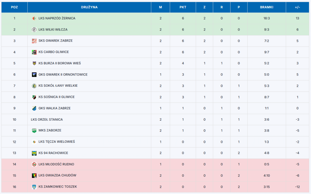 Fantastyczną formę prezentuje Naprzód Żernica, który zanotował kolejne wysokie zwycięstwo i udowodnił, iż liczy się w tym sezonie w czołówce. Wilki również spisują się znakomicie, notując drugie zwycięstwo z rzędu i pokazując, iż są groźnym przeciwnikiem dla wszystkich zespołu.