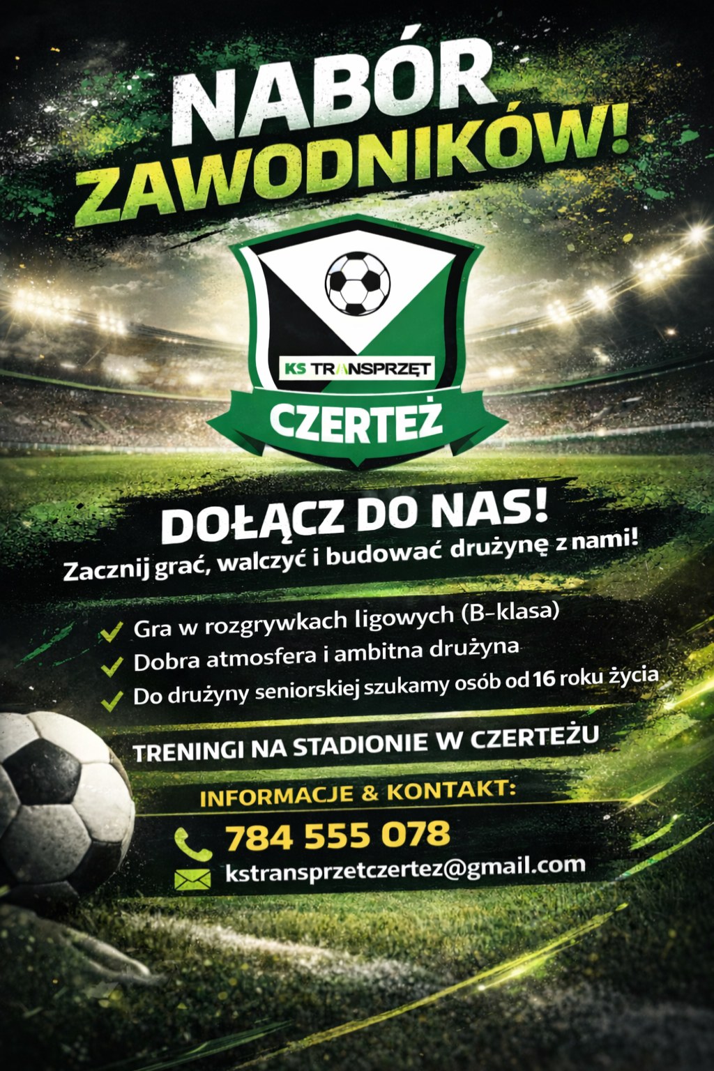 Klub piłkarski KS Transprzęt Czerteż rozpoczął nabór zawodników do kadry seniorskiej. To szansa dla osób, które chcą spróbować swoich sił w rozgrywkach ligowych i dołączyć do ambitnie budowanego zespołu przed startem nowej rundy.