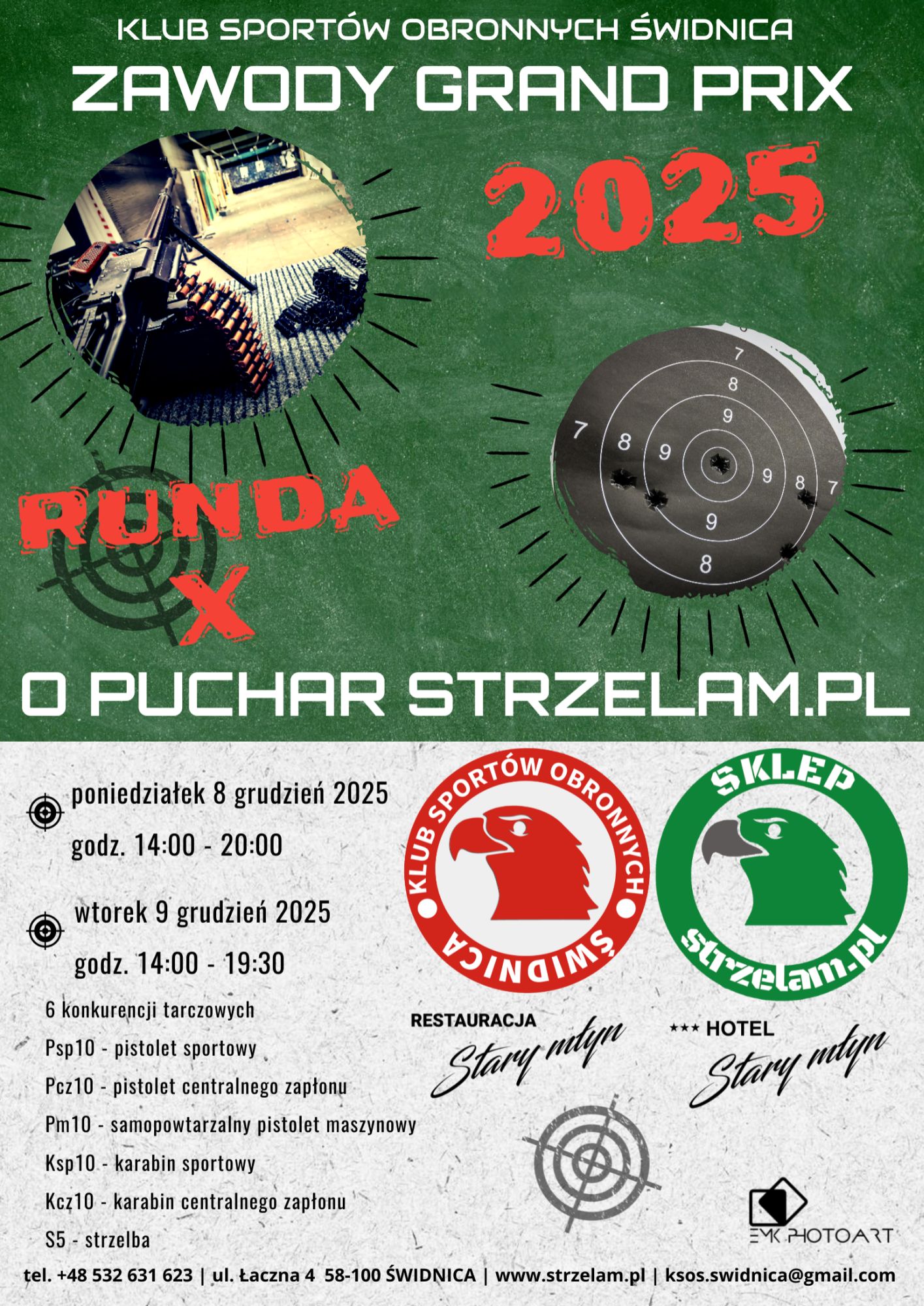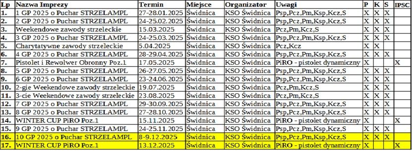 Klub Sportów Obronnych Świdnica zaprasza do udziału w dziesiątych zawodach strzeleckich w ramach Grand Prix 2025 o Puchar STRZELAMPL. Wydarzenie już w najbliższy poniedziałek i wtorek (8-9 grudnia).