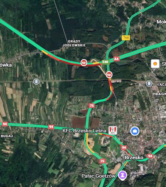 Ze względu na skale zdarzenia jezdnia w kierunku Tarnowa jest całkowicie zablokowana. Służby kierują samochody na zjazd w Brzesku, w związku z czym zarówno na zjeździe z autostrady, jak i na drodze krajowej nr 94 tworzą się wielokilometrowe korki.