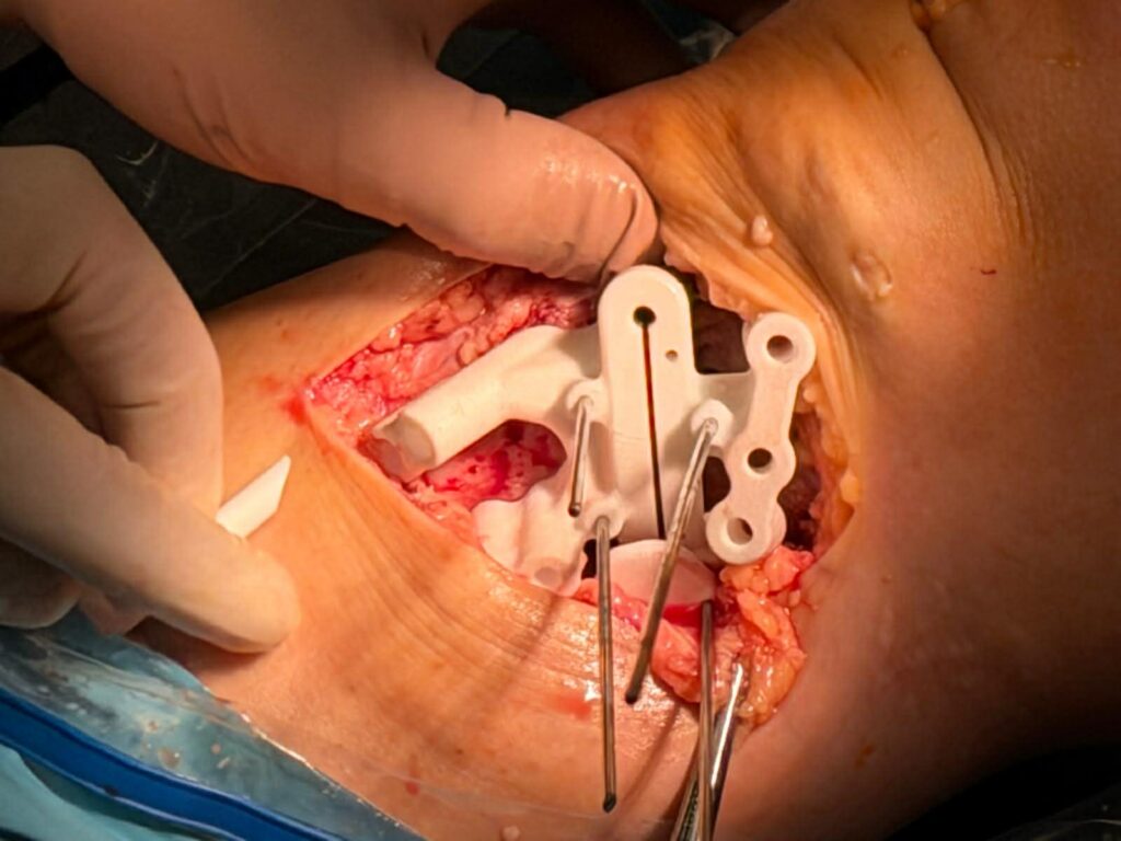 Aby wyeliminować problem konieczne było stworzenie modelu 3D i precyzyjne przemodelowanie kości piszczelowej. Z pomocą przyszedł Jakub Piękoś inżynier medyczny z Warszawy, który zaprojektował komputerowo i precyzyjnie wymierzył przycięcie kości w kilku płaszczyznach. Stworzony model 3D posłużył lekarzom jako przewodnik śródoperacyjny.