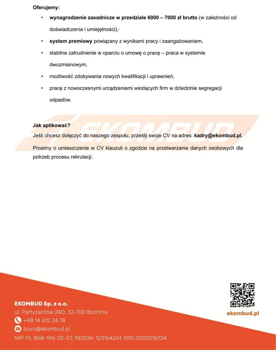 🔸 PRACA w EKOMBUD: Mechanik maszyn i urządzeń przemysłowych (K/M)