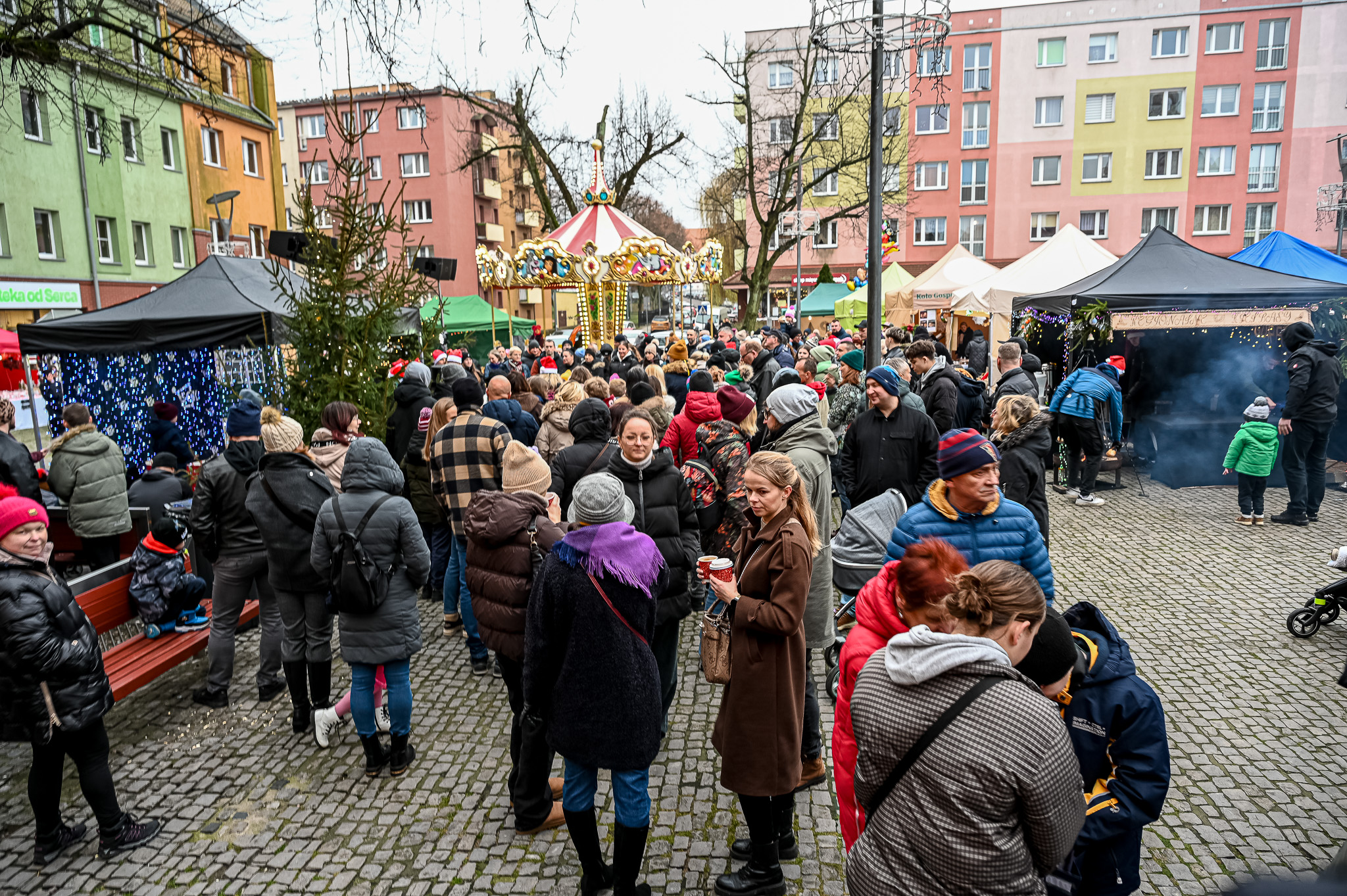 To był wyjątkowo piękny weekend na Rynku Staromiejskim. Na Jarmarku pod Szczęśliwą Gwiazdą mali i duzi stargardzianie poczuli świąteczną magię. Jak zawsze dużą popularnością, zwłaszcza wśród najmłodszych, cieszyła się karuzela wenecka. Było też rękodzieło, artystyczne przedstawienie Betlejem, lokalne produkty, żywa szopka i smakołyki – zarówno do spróbowania na miejscu, jak i do zabrania na wigilijne stoły. Wiele osób zdecydowało się też zrobić coś dobrego dla innych. Mieszkańcy własnoręcznie tworzyli świąteczne kartki dla seniorów. Z kolei w Artbusie działała „Życzeniowa Przystań”, w której można było zostawić życzenia dla wszystkich stargardzian.