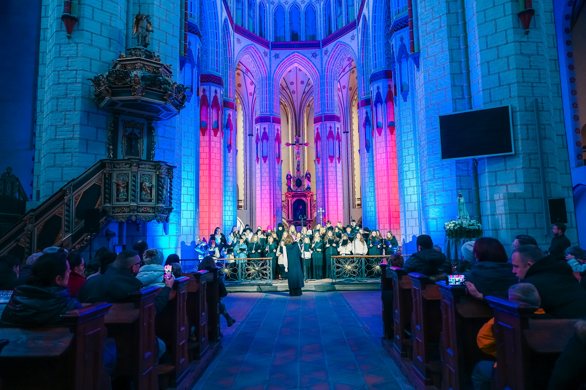 Atrakcje i stoiska jarmarku wypełniły cały Rynek, ale w pobliskiej kolegiacie również dużo się działo. Przez cały weekend wnętrza świątyni wypełniały dźwięki darmowych koncertów. Wystąpili: Chór Cantore Vox ze Szkoły Podstawowej nr 11, zespół Boże Światełka, Julita Kożuszek oraz Chór Cantore Gospel wraz z Anną Marią Mbayo.