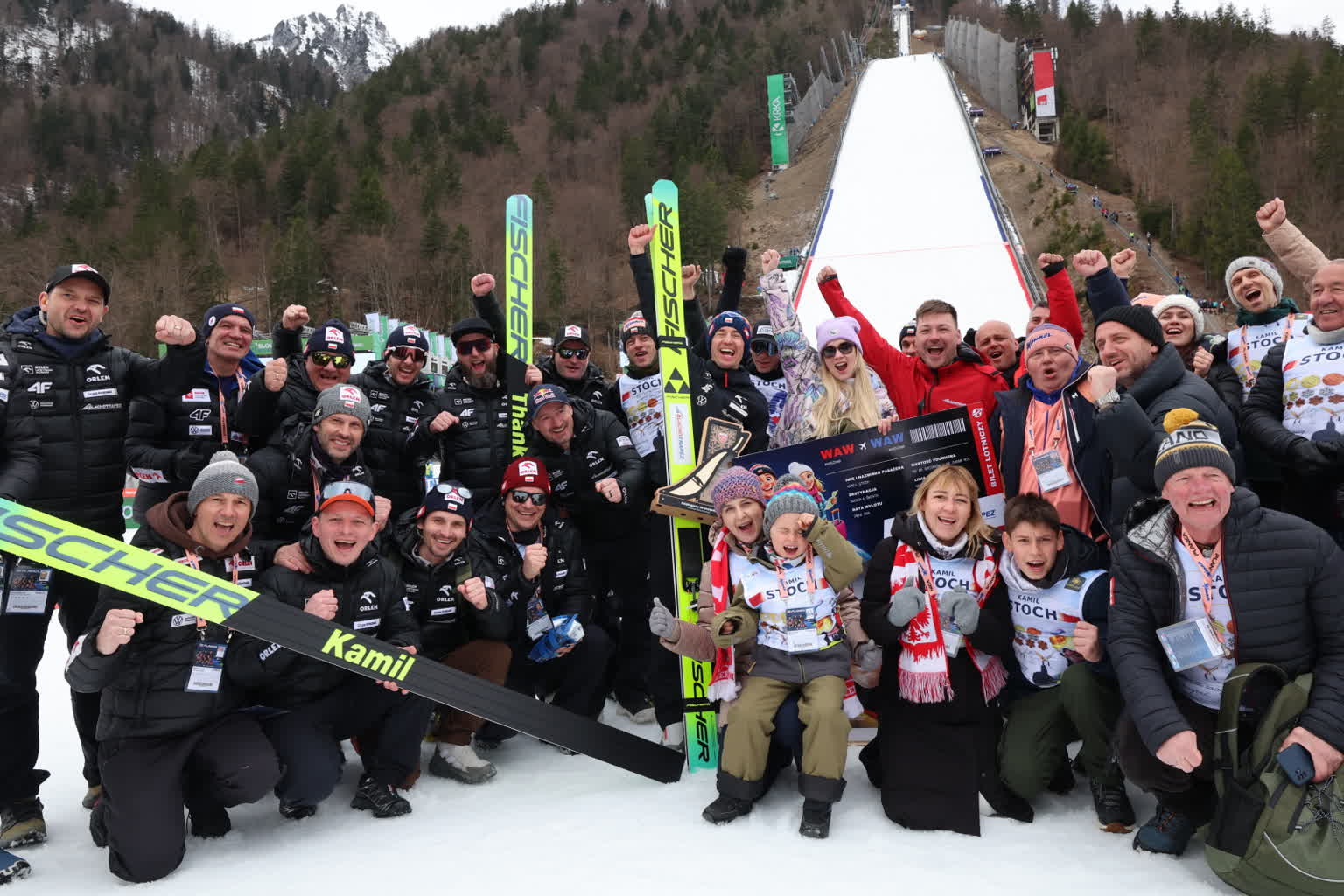 Gdy konkurs się zakończył, Stoch ponownie został zaproszony na zeskok. Nastąpiła kolejna sesja fotograficzna, tym razem z oficjelami, trenerami i osobami związanymi z jego klubem Eve-nement Zakopane.