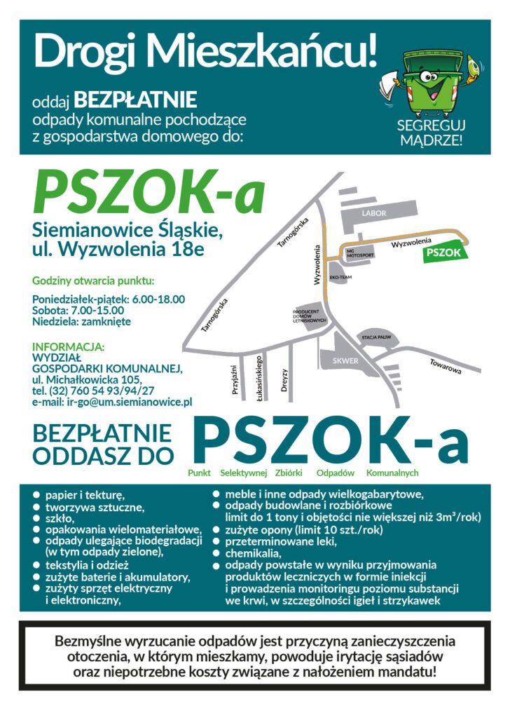 W związku z planowanymi pracami technicznymi nastąpią przerwy w działaniu Punktu Selektywnej Zbiórki Odpadów Komunalnych – PSZOK: