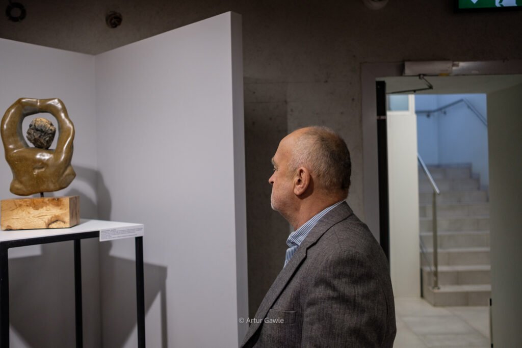 W minioną niedzielę (15.02.2026) o 13:30 w MCA – oddziale BWA Tarnów – oficjalnie otwarto wystawę Romana Dołżyckiego „Między formą a materią”. Goście mogli podziwiać obiekty, w których bezbarwne, czyste szkło koresponduje z chropowatym kamieniem, miękkim drewnem i jutą, tworząc rzeźbiarskie, niemal magiczne kompozycje. Roman Dołżycki, tworzący w Krośnie od lat 70., pozostaje wierny inspiracjom naturą – to ona często dyktuje kształt i staje się współautorem dzieła. Kuratorka dr Hanna Wajda-Lawera z CDS Krosno poprowadziła zwiedzających przez ten fascynujący materiałowy dialog. Wystawa potrwa do 19 marca 2026 r. – wstęp wolny.