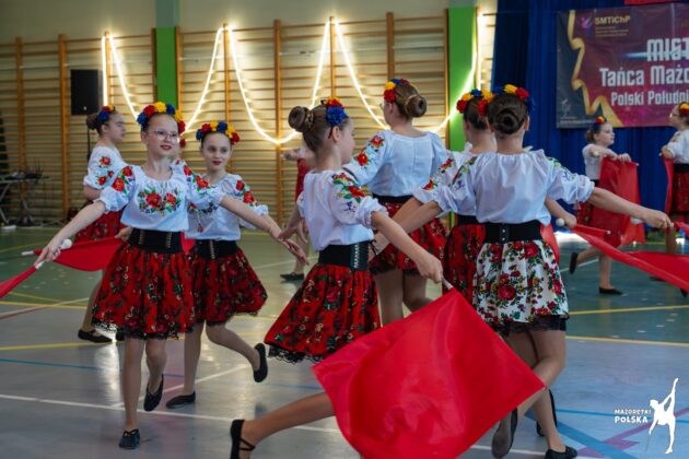 Na parkiecie zawodów w Górze zespół zaprezentował układy z buławą w folkowym klimacie i od razu sięgnął po laury..
