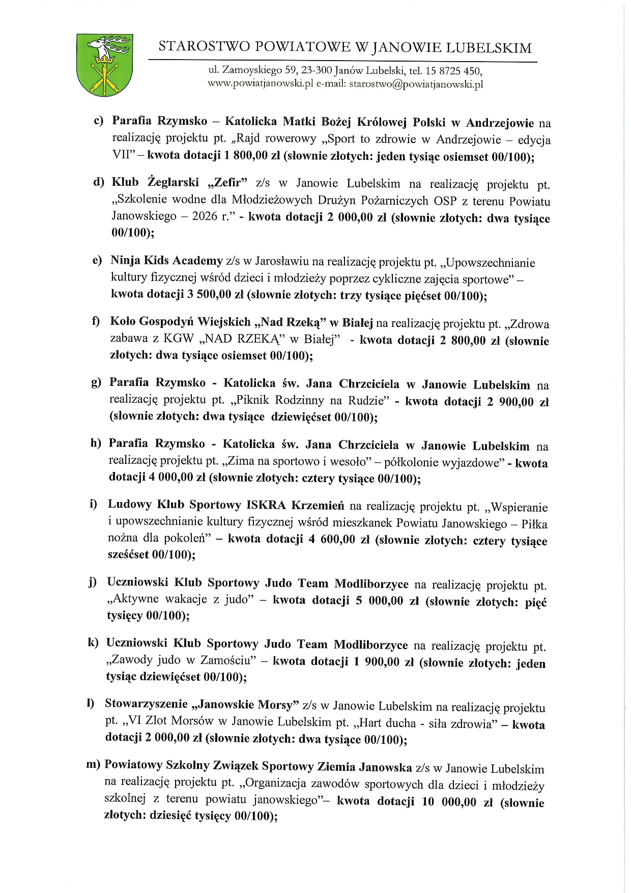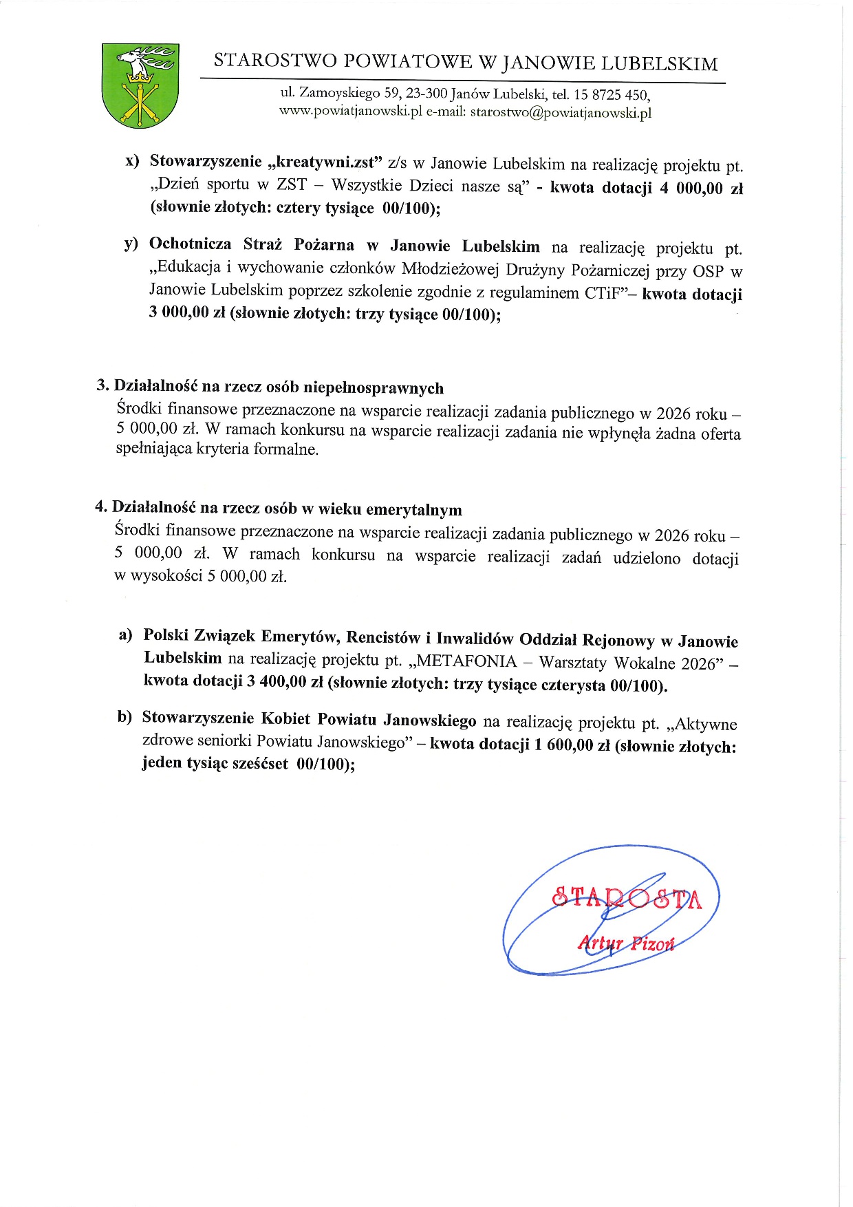 Rozstrzygnięcie otwartego konkursu ofert 2026