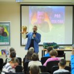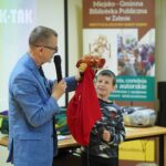 Na spotkanie przybyli uczniowie klas drugich Szkoły Podstawowej w Żabnie, z którymi Pan Andrzej gwałtownie nawiązał kontakt – opowiadał dzieciom o historiach pojawiających się w jego książkach, przeczytał również fragment jednej z nich.
