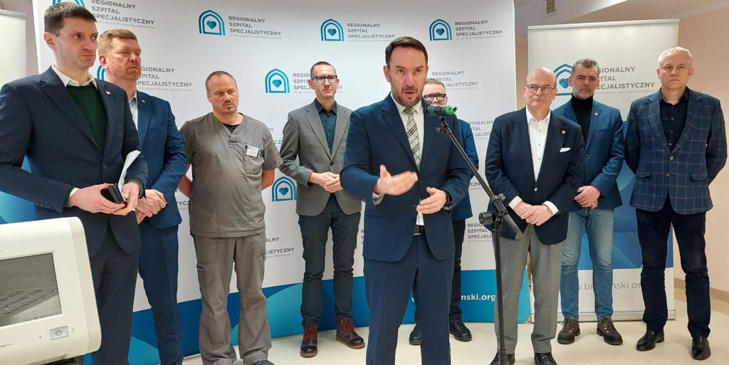 FOT. MARYLA RZESZUT– Wniosek ze szpitala wpłynął w październiku ub.r. do wojewody kujawsko-pomorskiego Michała Sztybla, który go zaakceptował i skierował do Ministerstwa Spraw Wewnętrznych i Administracji, skąd poszła decyzja o wsparciu rządowym w ramach zapewnienia bezpieczeństwa mieszkańców – mówił dziś wiceminister, poseł Tomasz Szymański na konferencji prasowej. – Ten przenośny sprzęt trafił do szpitala w połowie stycznia i już służy pacjentom.