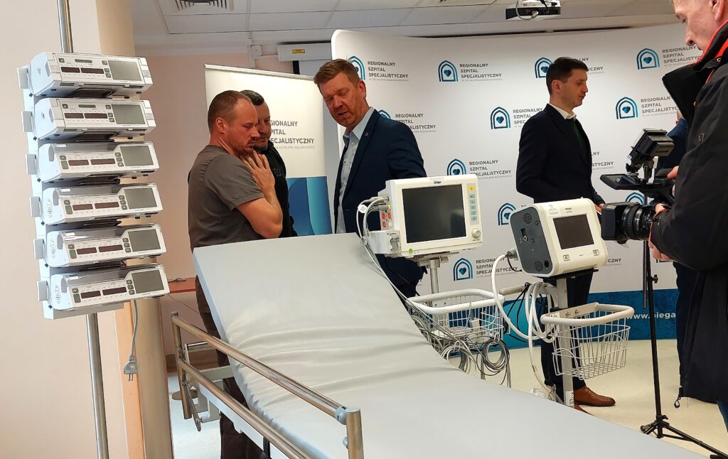 Dr hab. Maciej Bieliński, zastępca dyrektora ds. medycznych szpitala w Grudziądzu: – Serdecznie dziękujemy za ten sprzęt. Jak państwo widzicie, jest on ukierunkowany głównie na ratownictwo, ratowanie życia, na stany ostre. Będzie wykorzystywany w wielu obszarach szpitala, który już udowodnił swoją istotność i umiejętność dostosowania się do sytuacji, gdy był kryzys covidu. Liczymy, iż to doposażenie zwiększy nasze możliwości i będzie ratował pacjentów. W razie jakiegokolwiek kryzysu będziemy na stanowiskach, by ratować pacjentów według naszej najlepszej wiedzy i umiejętności.