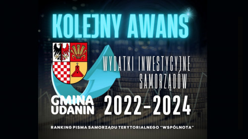 Gmina Udanin awansowała na 55. pozycję wśród 1500 gmin wiejskich w Polsce pod kątem wydatków inwestycyjnych na mieszkańca!