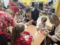 Rodzice wraz z pociechami ozdabiali choinki, tworzyli piękne ozdoby świąteczne, dekorowali pierniki oraz brali udział w wyjątkowej „lekcji ciszy”, która wprowadzała wszystkich w spokojny, magiczny nastrój. Nie zabrakło także rozmów, uśmiechów i chwil spędzonych w ciepłej, rodzinnej atmosferze.