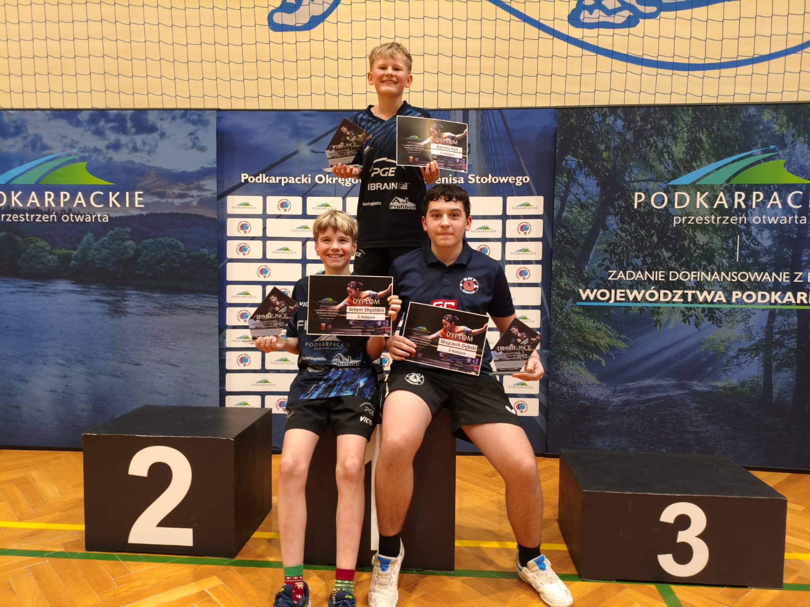 Świetny turniej rozegrał natomiast Wojciech Dębski. Zawodnik SKT Sanok pewnie pokonał Jakuba Szymańskiego (KU AZS Politechnika Rzeszowska) 3:0, a następnie wygrał 3:1 z Julianem Zborowskim z KSTS Krosno. W półfinale stoczył niezwykle zacięty pojedynek z Artemem Shyshkinem (KU AZS Politechnika Rzeszowska), przegrywając minimalnie 2:3. W meczu o trzecie miejsce nie pozostawił już złudzeń rywalowi – Fabian Michna z KSTS Krosno został pokonany 3:0, co dało Wojtkowi miejsce na podium.