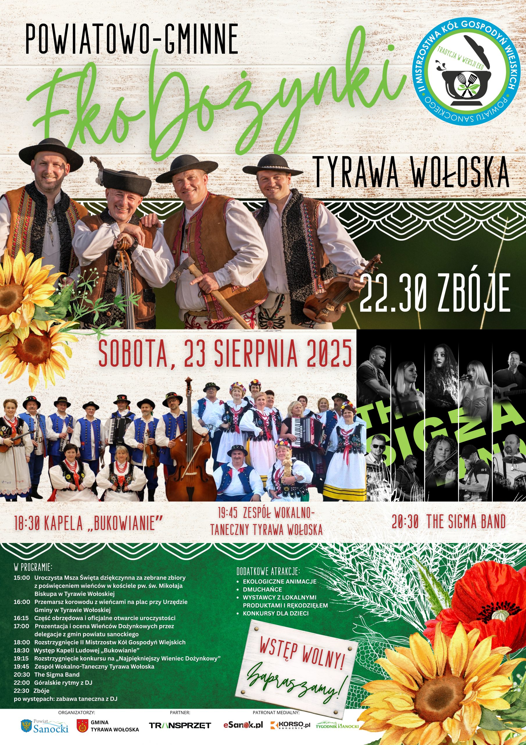 Organizatorami wydarzenia są Powiat Sanocki i Gmina Tyrawa Wołoska. Zaproś znajomych i bądź z nami! Niech Tyrawa Wołoska rozbrzmi radością, muzyką i zapachem świeżo zebranych plonów!