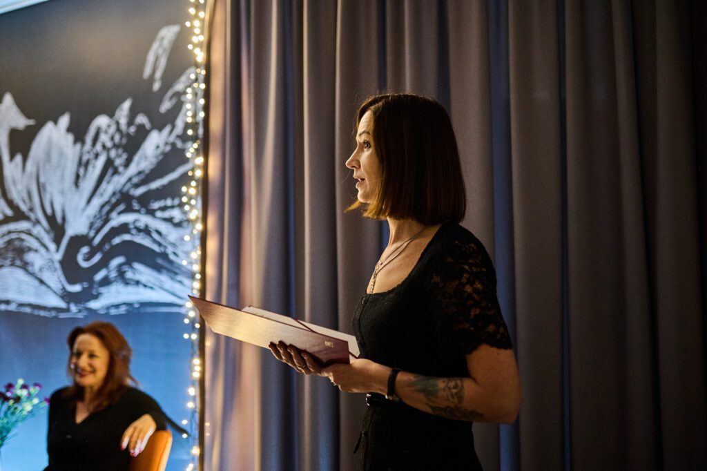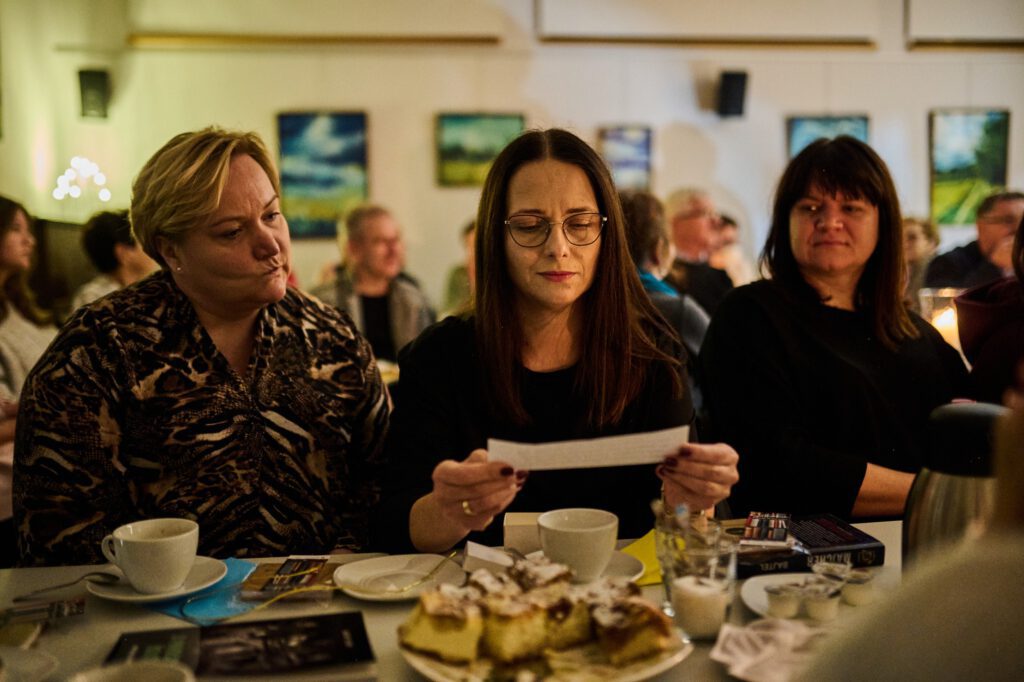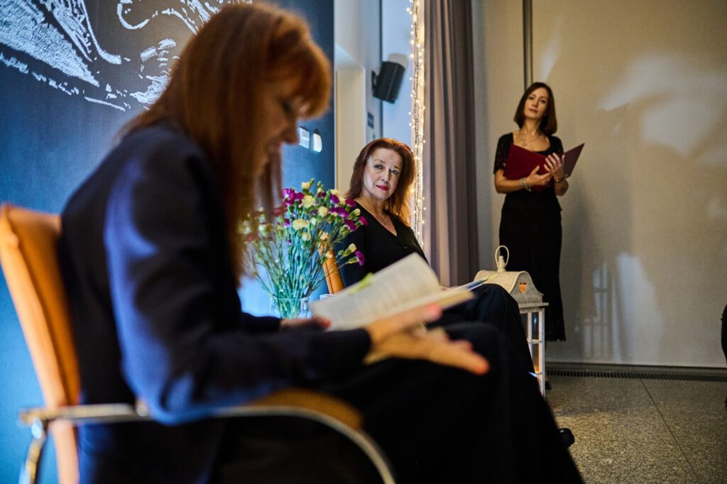 A to wszystko dzięki NASZYM ŚLŌNSKIM AKTORKŌM: Neszce i Barbōrce, czyli Agnieszce Radzikowskiej i Barbarze Lubos-Rokicie. Artystki przeczytały fragmenty śląskich dzieł kultury wprowadzając obecnych w przebogaty literacki świat. Wielkie uznanie dla Gości, którzy również czytali po naszymu udowadniając, iż to nie takie trudne.