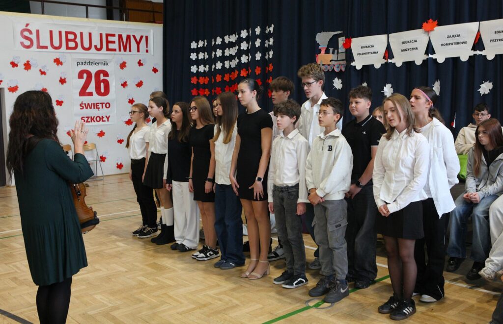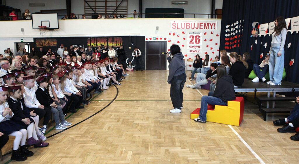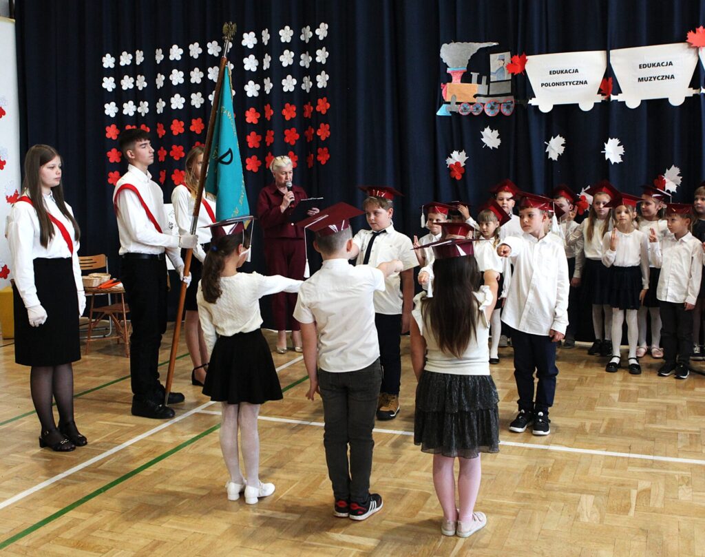 W trakcie obchodów pierwszoklasiści złożyli ślubowanie, oficjalnie dołączając do grona uczniów szkoły.