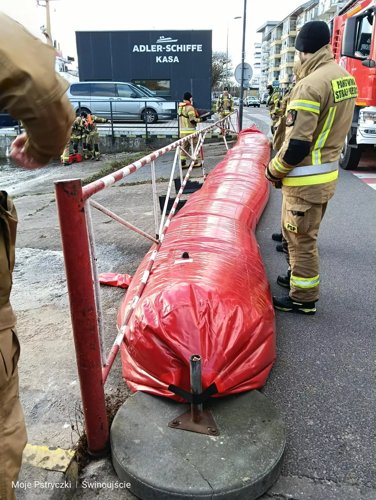 Na Wybrzeżu Władysława IV ustawiono elastyczne rękawy i mobilne bariery przeciwpowodziowe. Ich zadaniem jest ochrona slipów oraz terenów nabrzeżnych przed zalaniem wodami cofającego się kanału portowego. Sprzęt jest nowością w zasobach Wydziału Zarządzania Kryzysowego Urzędu Miasta Świnoujście.