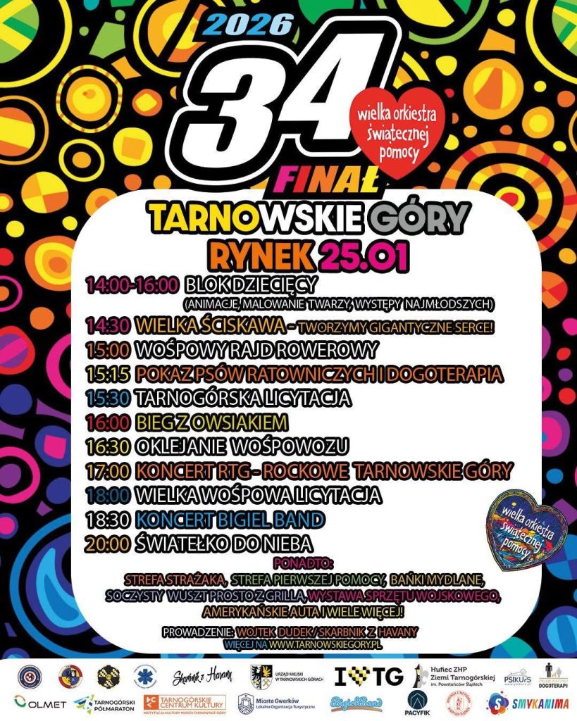 Już w najbliższą niedzielę Tarnowskie Góry zagrają razem z Wielką Orkiestrą Świątecznej Pomocy. W centrum miasta czeka mnóstwo atrakcji dla całych rodzin – od animacji i zabaw dla dzieci, przez pokazy psów ratowniczych, po wspólne tworzenie gigantycznego serca.