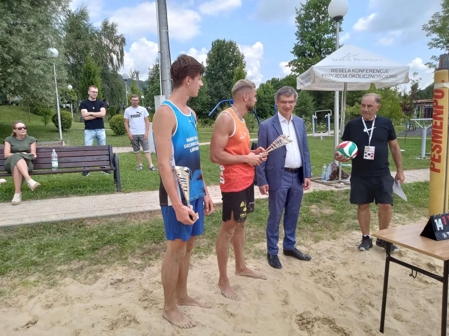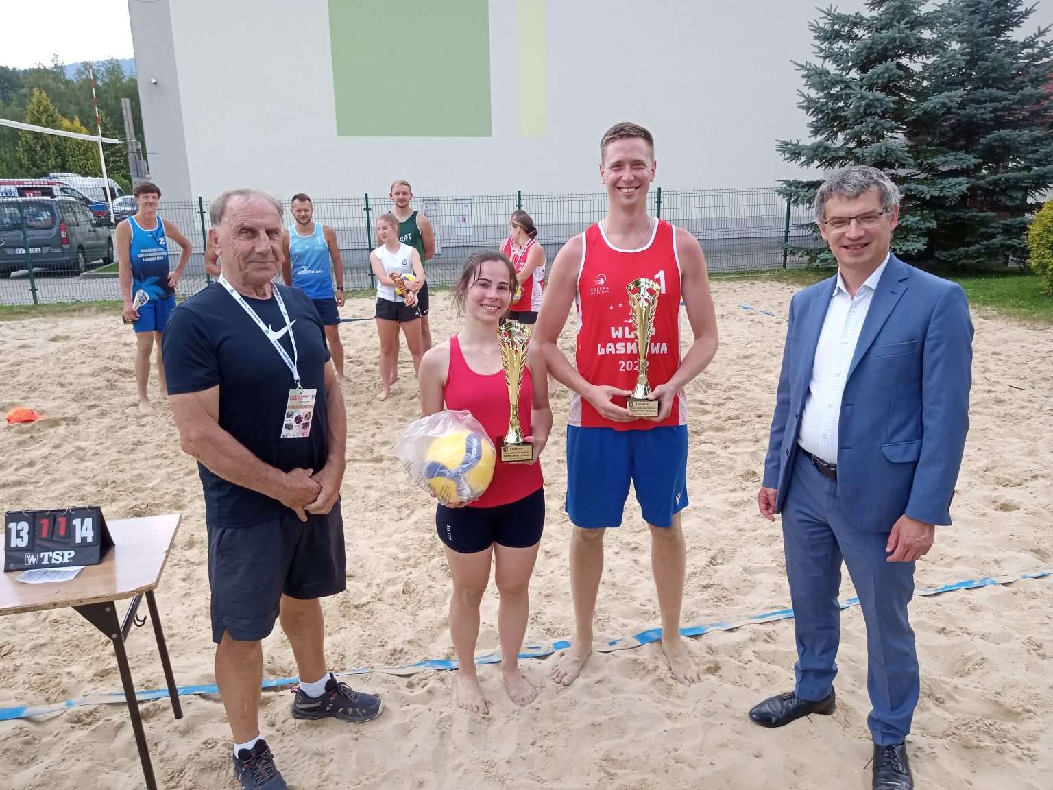 Wójt gminy Tymbark dr Paweł Ptaszek, pogratulował osiągnięcia przez uczestników turnieju bardzo wysokich umiejętności siatkarskich w dodatku w trudniejszej wersji plażowej. Z życzeniami dalszych sukcesów wręczył pamiątkowe puchary i nagrody.
