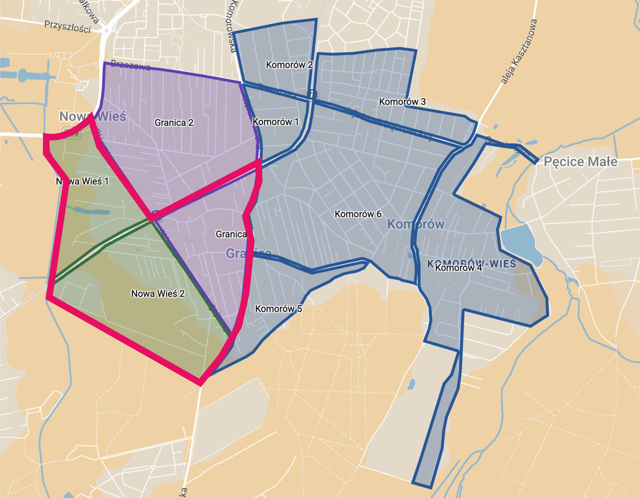 Na terenie GRANICY, KOMOROWA I NOWEJ WSI