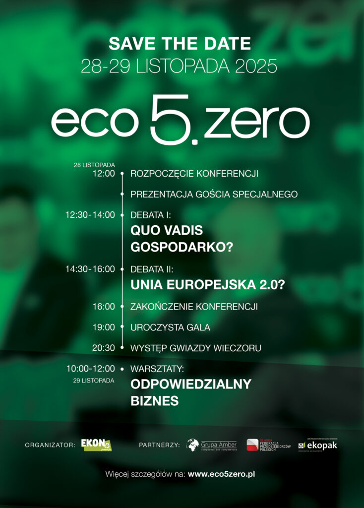 W dniach 28–29 listopada 2025 roku w hotelu Monopol ***** w Katowicach odbędzie się VII edycja Międzynarodowej Konferencji EKON eco5.zero – prestiżowego wydarzenia poświęconego wyzwaniom zrównoważonego rozwoju, transformacji energetycznej oraz budowie gospodarki zeroemisyjnej.