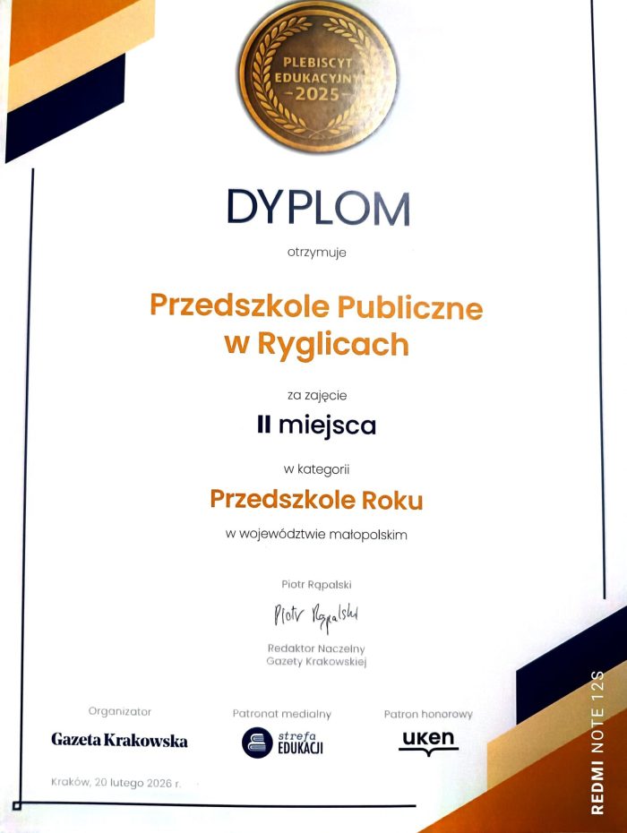 Publiczne Przedszkole w Ryglicach, w kategorii „Przedszkole Roku” zajęło
