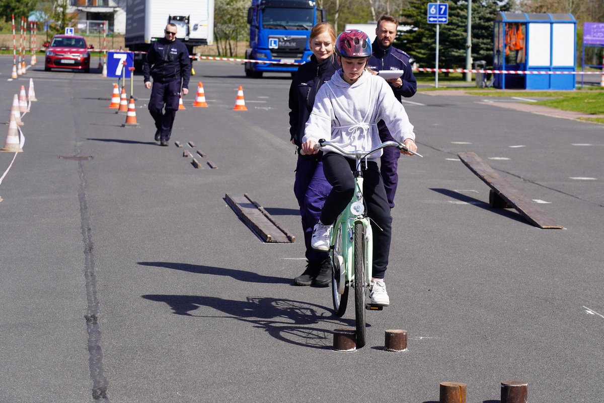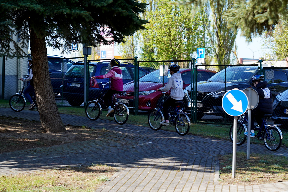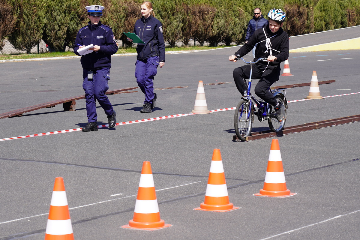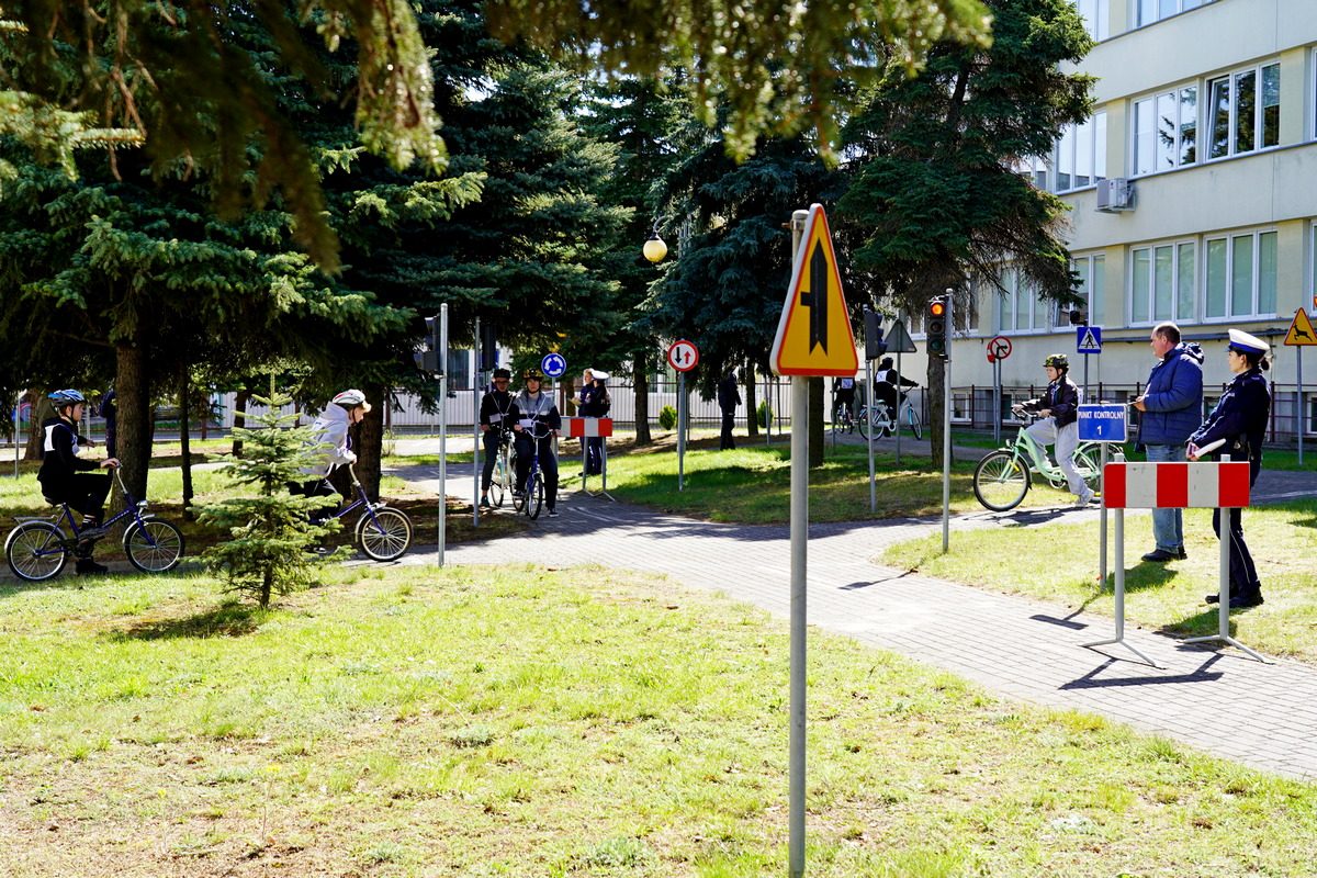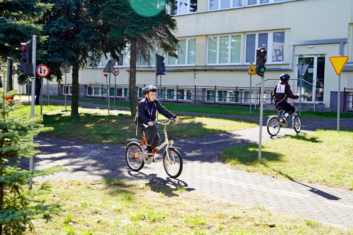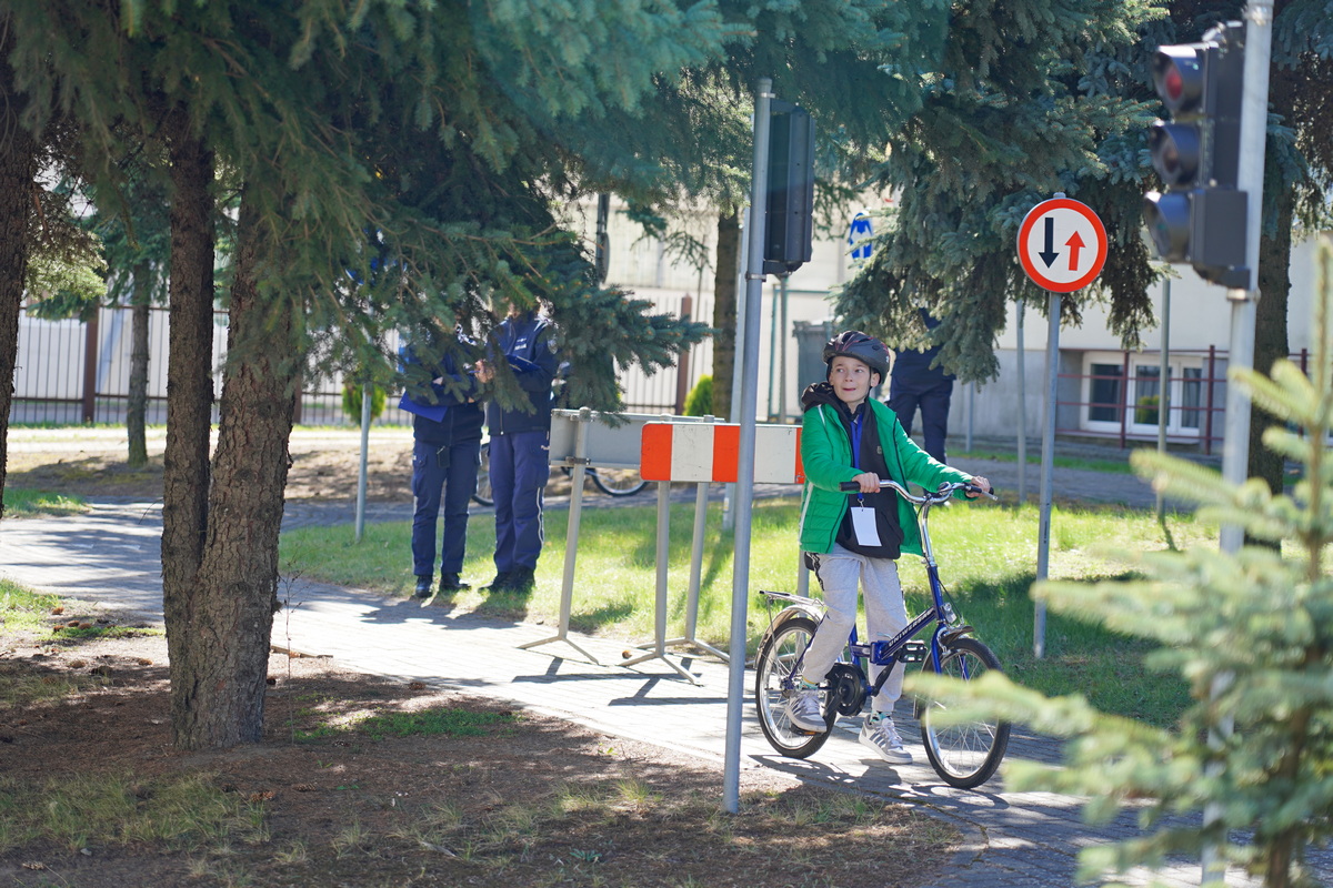 Kolejno uczestnicy zmierzyli się w swoich kategoriach wiekowych z praktycznych umiejętności i znajomości przepisów ruchu drogowego na terenie Miasteczka Ruchu Drogowego.