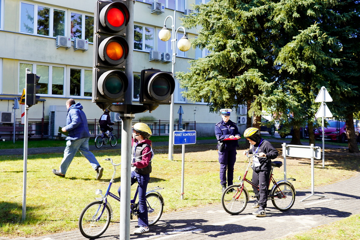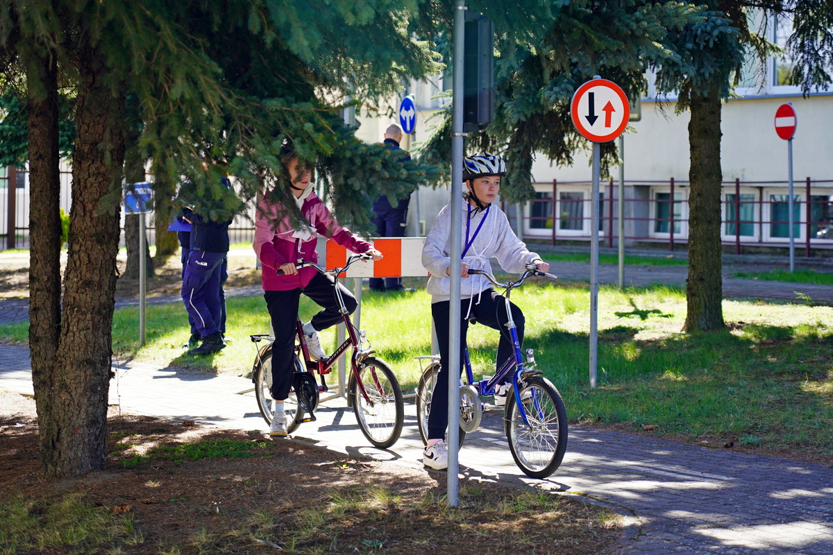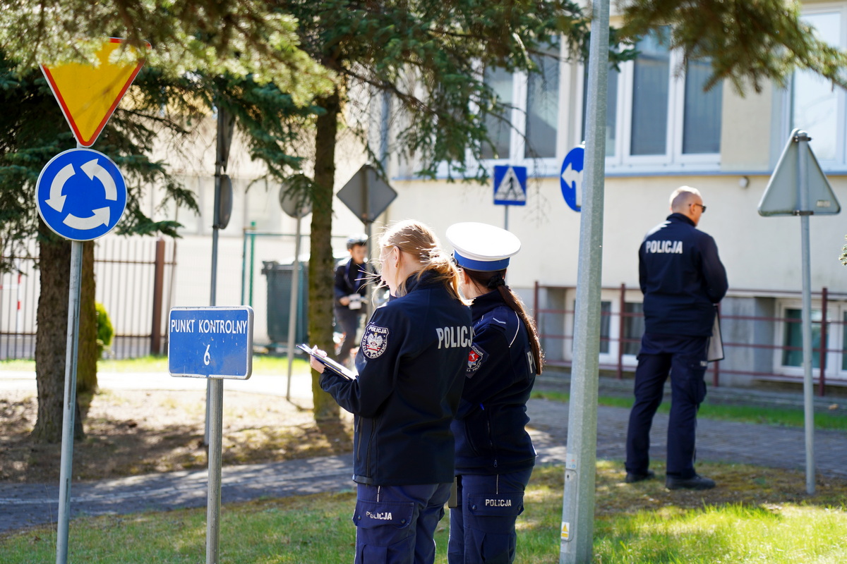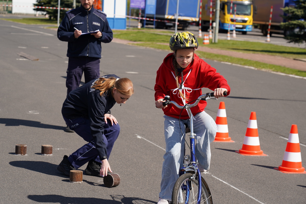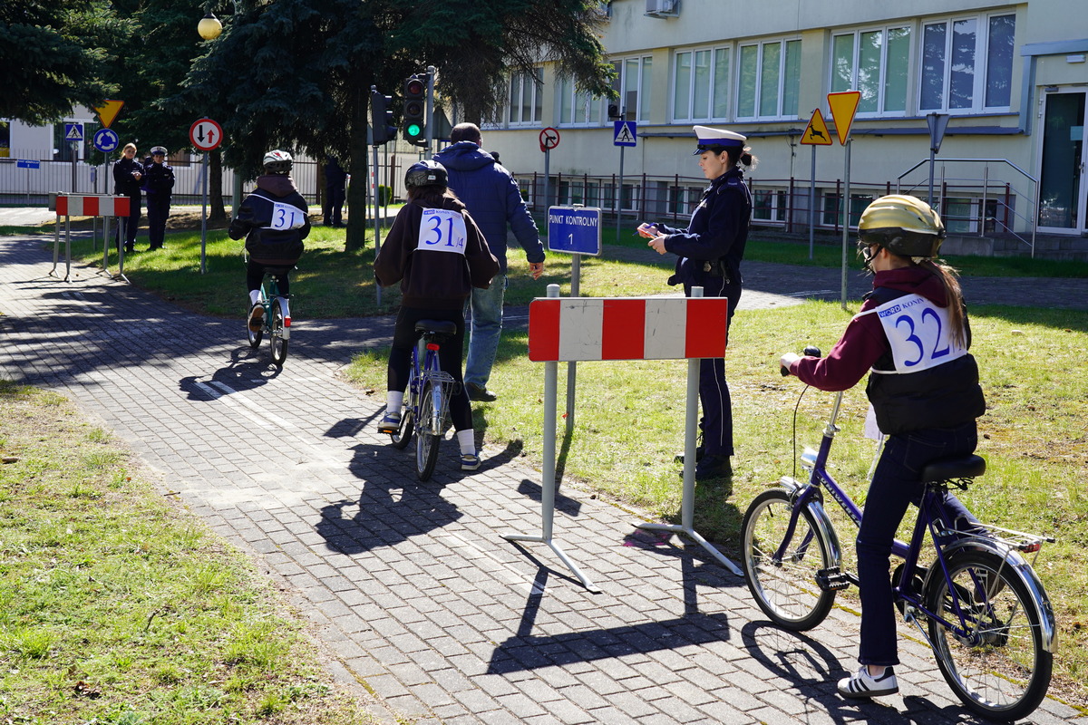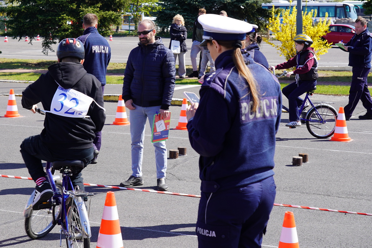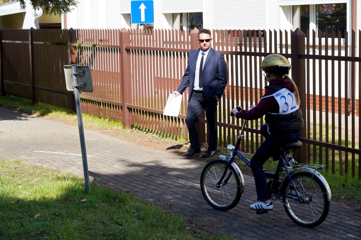 Kolejno uczestnicy zmierzyli się w swoich kategoriach wiekowych z praktycznych umiejętności i znajomości przepisów ruchu drogowego na terenie Miasteczka Ruchu Drogowego.