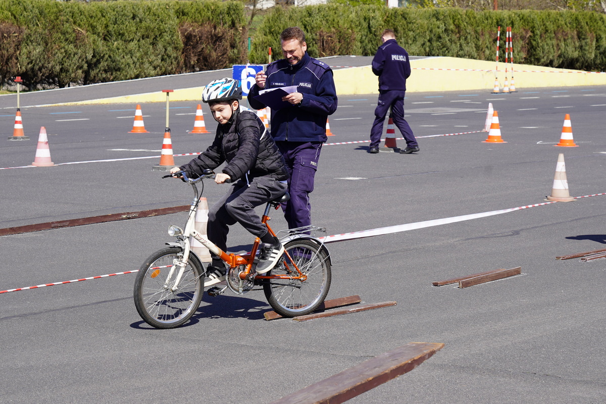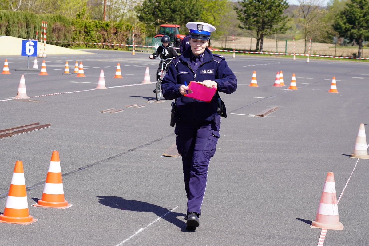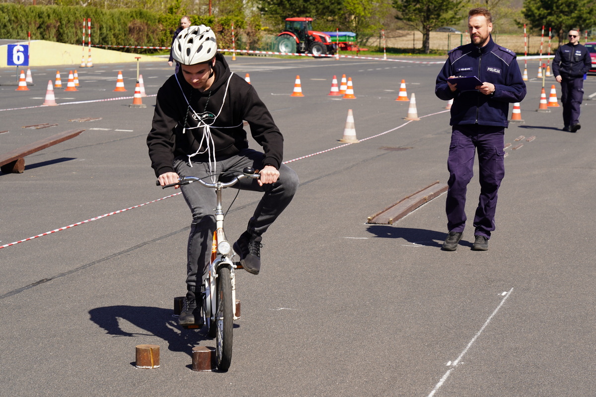 Ostatnim elementem zawodów był sprawdzian praktycznych umiejętności jazdy rowerem po torze sprawnościowym, oj nie był to łatwy tor i myślę, iż wielu z nas miałoby problem by przejechać go perfekcyjnie.