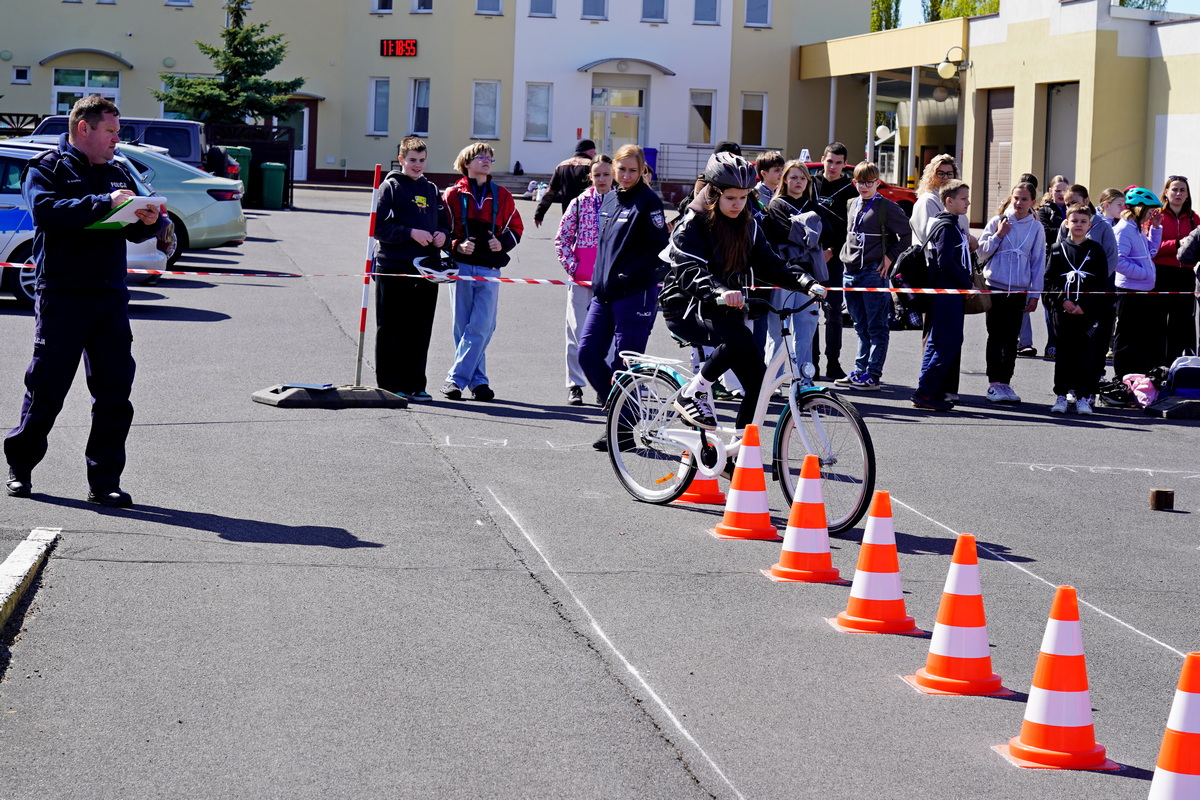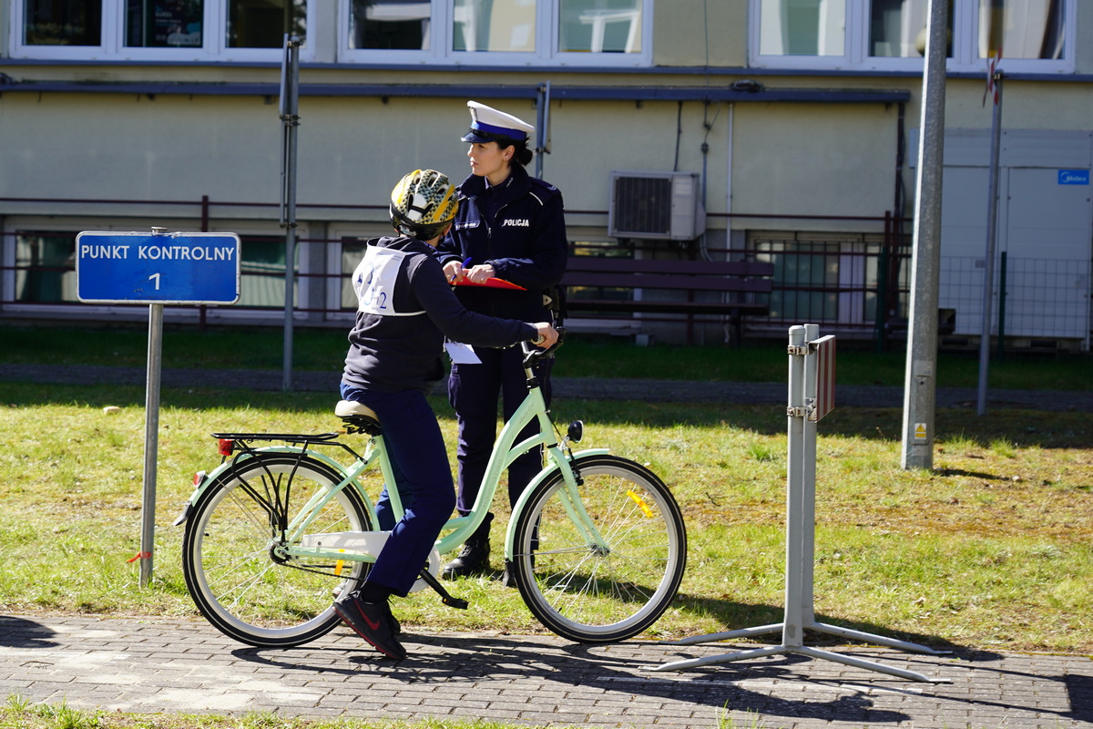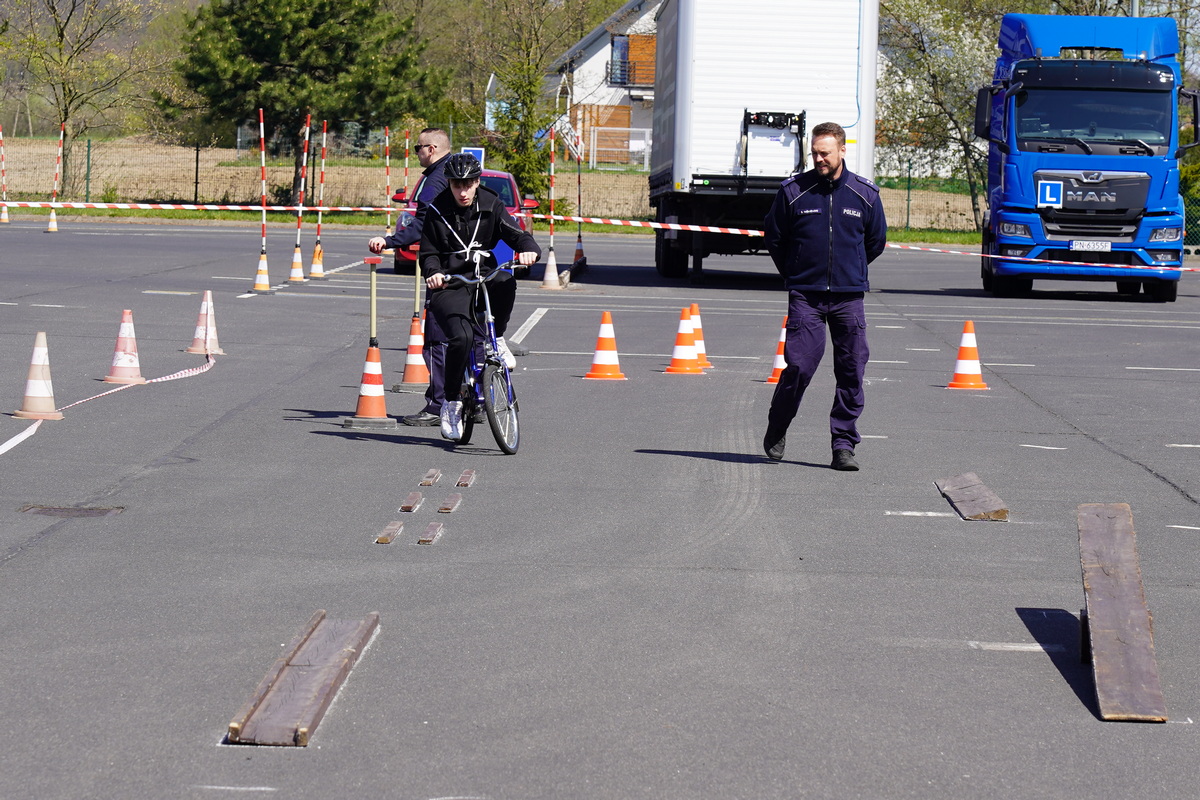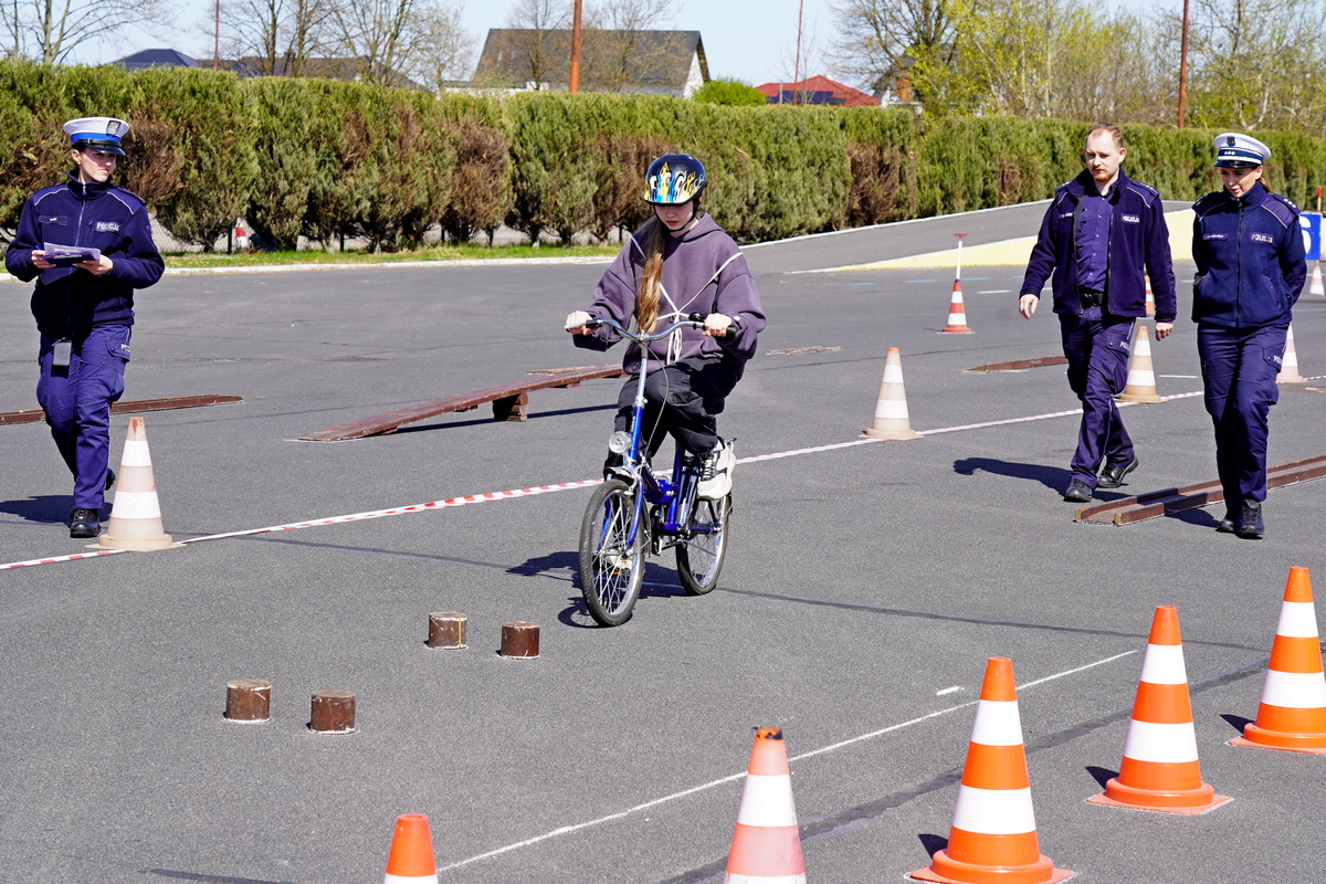 Ostatnim elementem zawodów był sprawdzian praktycznych umiejętności jazdy rowerem po torze sprawnościowym, oj nie był to łatwy tor i myślę, iż wielu z nas miałoby problem by przejechać go perfekcyjnie.