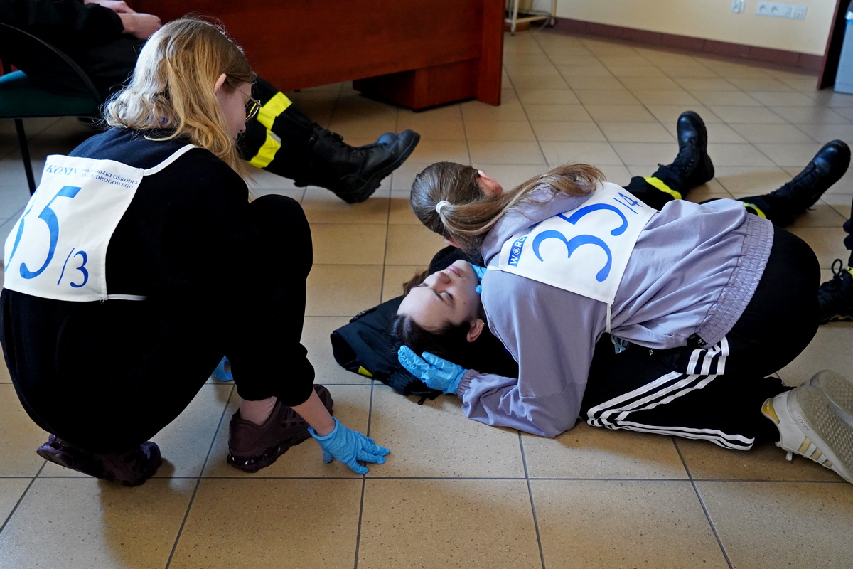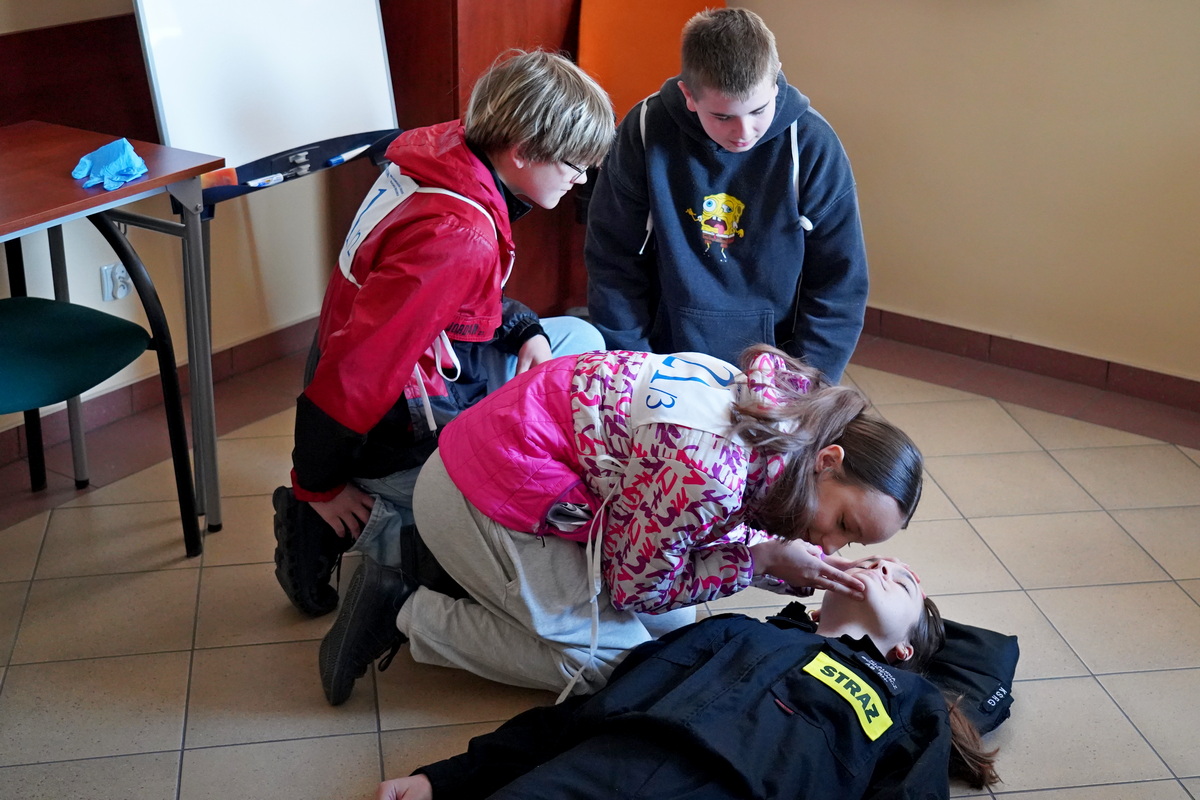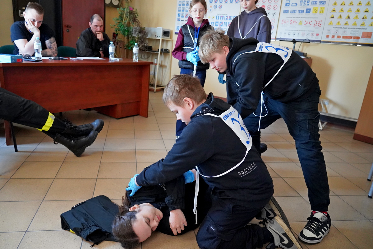 Ciekawym elementem składowym turnieju był sprawdzian uczestników z zasad udzielania pomocy przedmedycznej. Muszę przyznać szczerze, iż zachwycił nie tylko mnie, ale także naszych strażaków bardzo wysoki poziom wiedzy teoretycznej i praktycznej niektórych drużyn z udzielania pomocy przedmedycznej, ich zaangażowanie, podział zadań i wyraźne zaznaczenie lidera danej grupy.