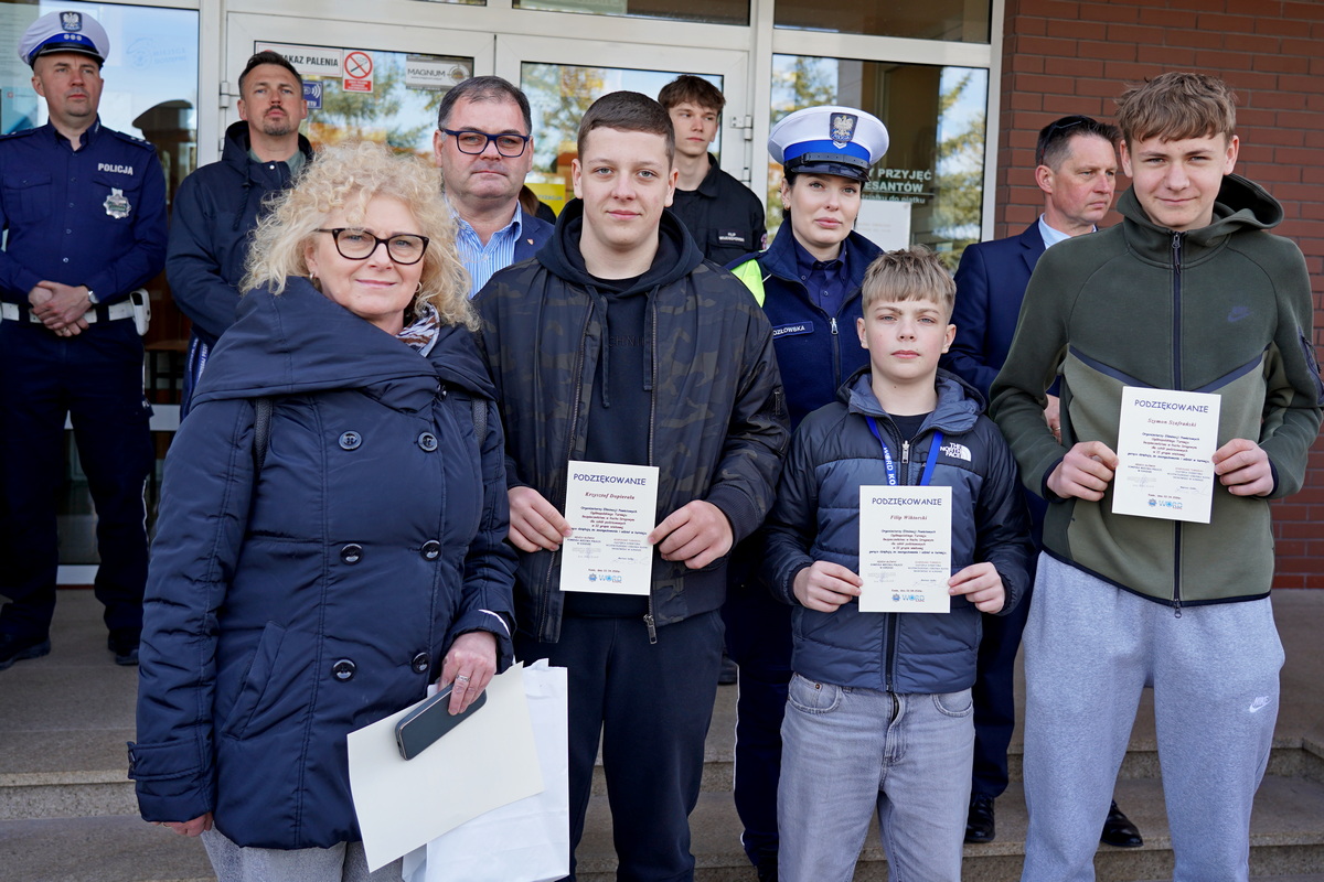 Wręczając nagrody dyrektor Seńko podkreślił, iż wszyscy uczestnicy zawodów, niezależnie od zajętego miejsca są zwycięzcami! Poświęcili swój czas na pogłębianie wiedzy z zasad ruchu drogowego, dzięki temu stali się świadomymi jego uczestnikami, zwiększając swoje i innych bezpieczeństwo. A ucząc się zasad udzielania pomocy przedmedycznej mogą kiedyś uratować zdrowie lub życie przypadkowej lub bliskiej osoby.