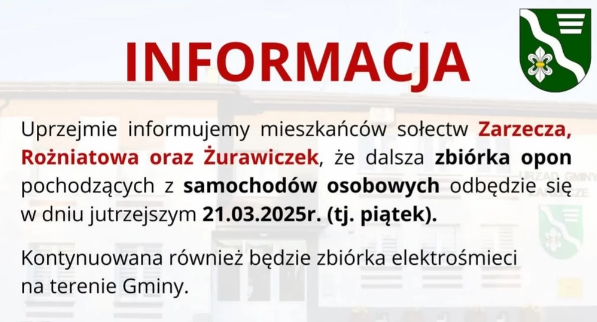 Zbiórka opon w Zarzeczu, Rożniatowie i Żurawiczkach