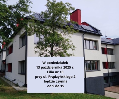W poniedziałek 13 października 2025 r. Filia nr 10 przy ul. Prądzyńskiego 2