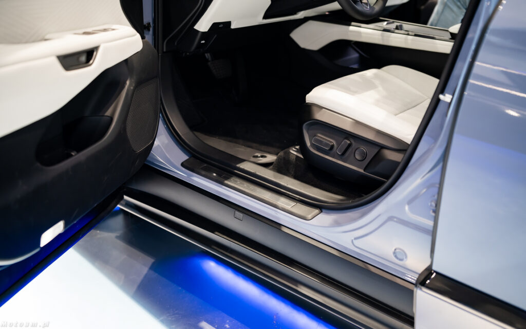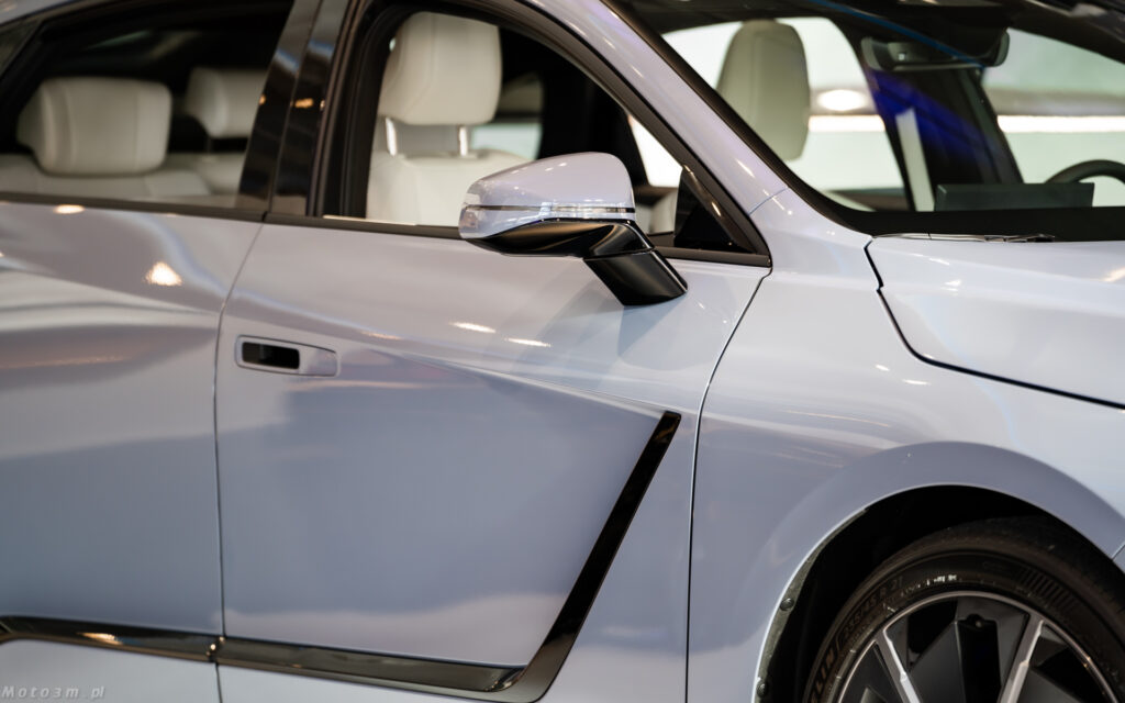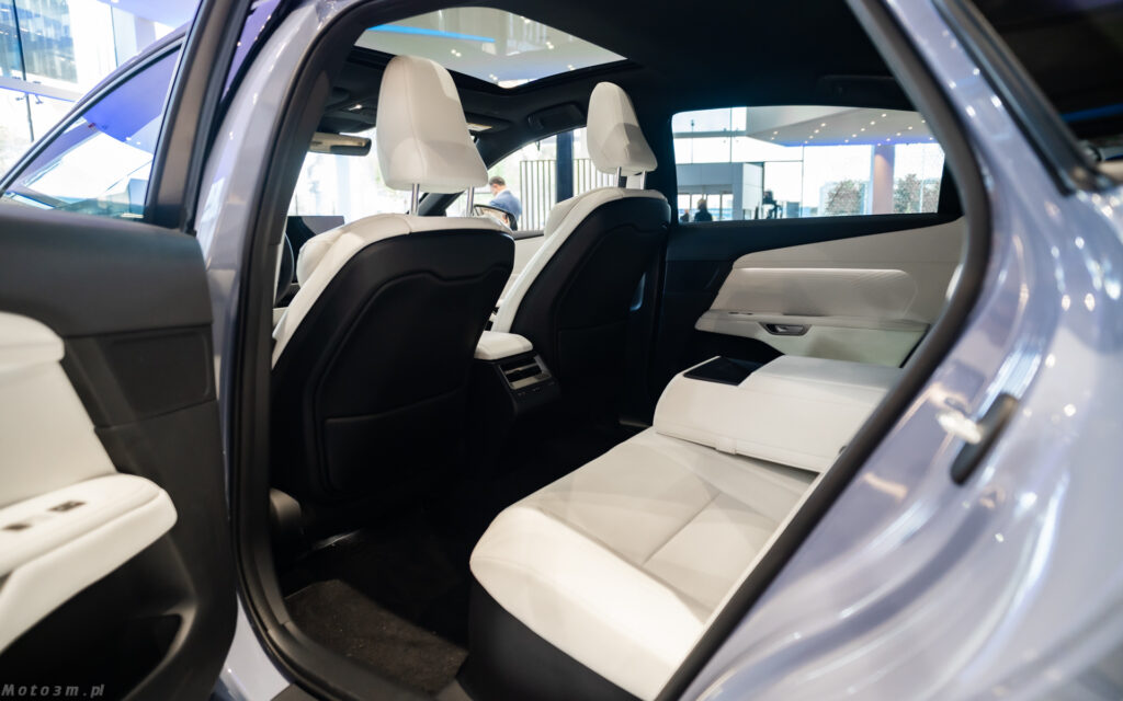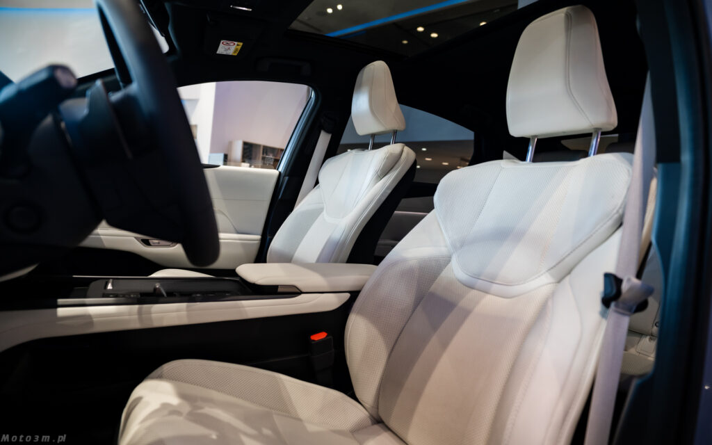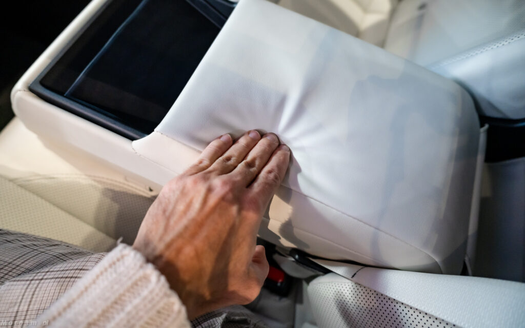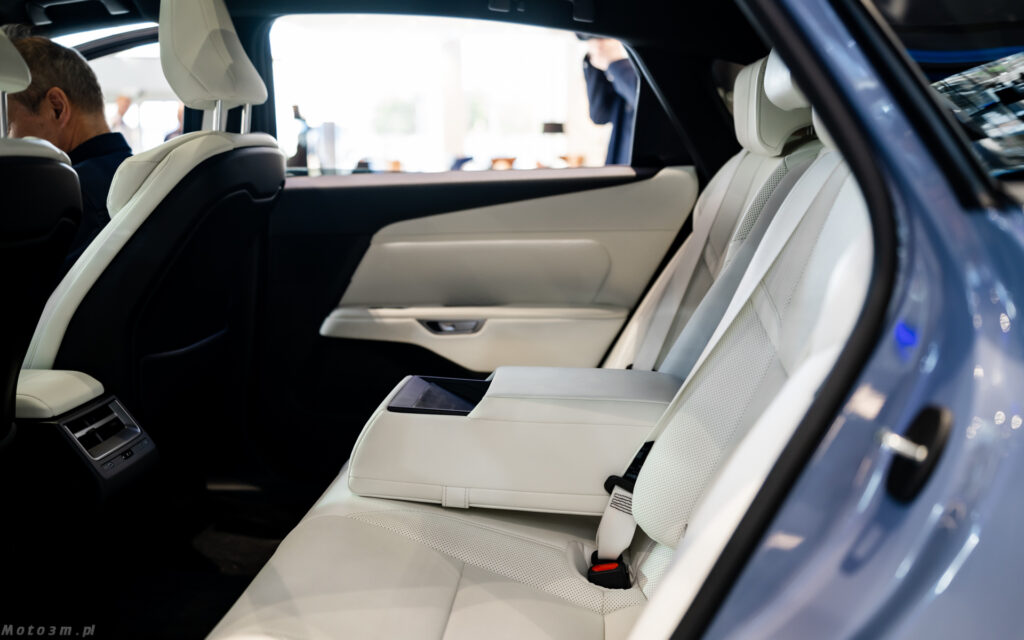Nie zmieni się natomiast wielkość kabiny, a ta jest imponująca. Nie bez powodu producent zwraca uwagę na wielkość tylnych drzwi. Są one większe niż te przednie – i przekłada się to na wręcz prezydencki komfort jazdy na tylnej kanapie. jeżeli pasażerowie z przodu nie odsuwają zanadto swoich foteli, mówimy tutaj o klasie modeli z segmentu F i to choćby tych w wersji „long”. Warto też oprzeć się o tylny podłokietnik – rzadko kiedy bywa on tak miękki! Za sprawą baterii umieszczonych w podłodze, miejsca dla pasażerów są umieszczone nieco wyżej niż standardowo ma to miejsce w limuzynach. Przekłada się to na wygodniejsze wsiadanie i wysiadanie.