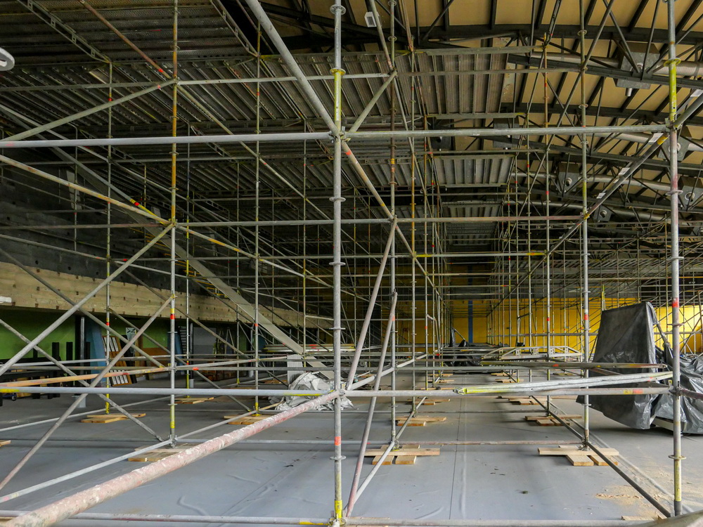 Bardzo szeroki zakres prac obejmuje trwający remont konińskiej hali RONDO Miejskiego Ośrodka Sportu i Rekreacji. Mieliśmy jakiś czas temu okazję wejść na budowę w towarzystwie kierownika obiektu – Janusza Lipińskiego i Marka Kużela – kierownika budowy z firm Grupa KDM, głównego wykonawcy prac.