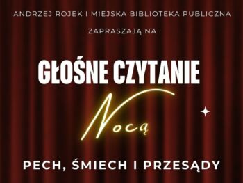Wszystkich chętnych do czytania krótkich tekstów podczas Głośnego Czytanie Nocą prosimy o zgłaszanie się do Czytelni Biblioteki Głównej osobiście lub telefonicznie (nr 41 322 1806)